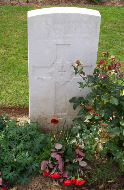 Grave of Charles Suddaby, 15846 Guardsman, Guards Cemetery, Lesboeufs, Somme France.